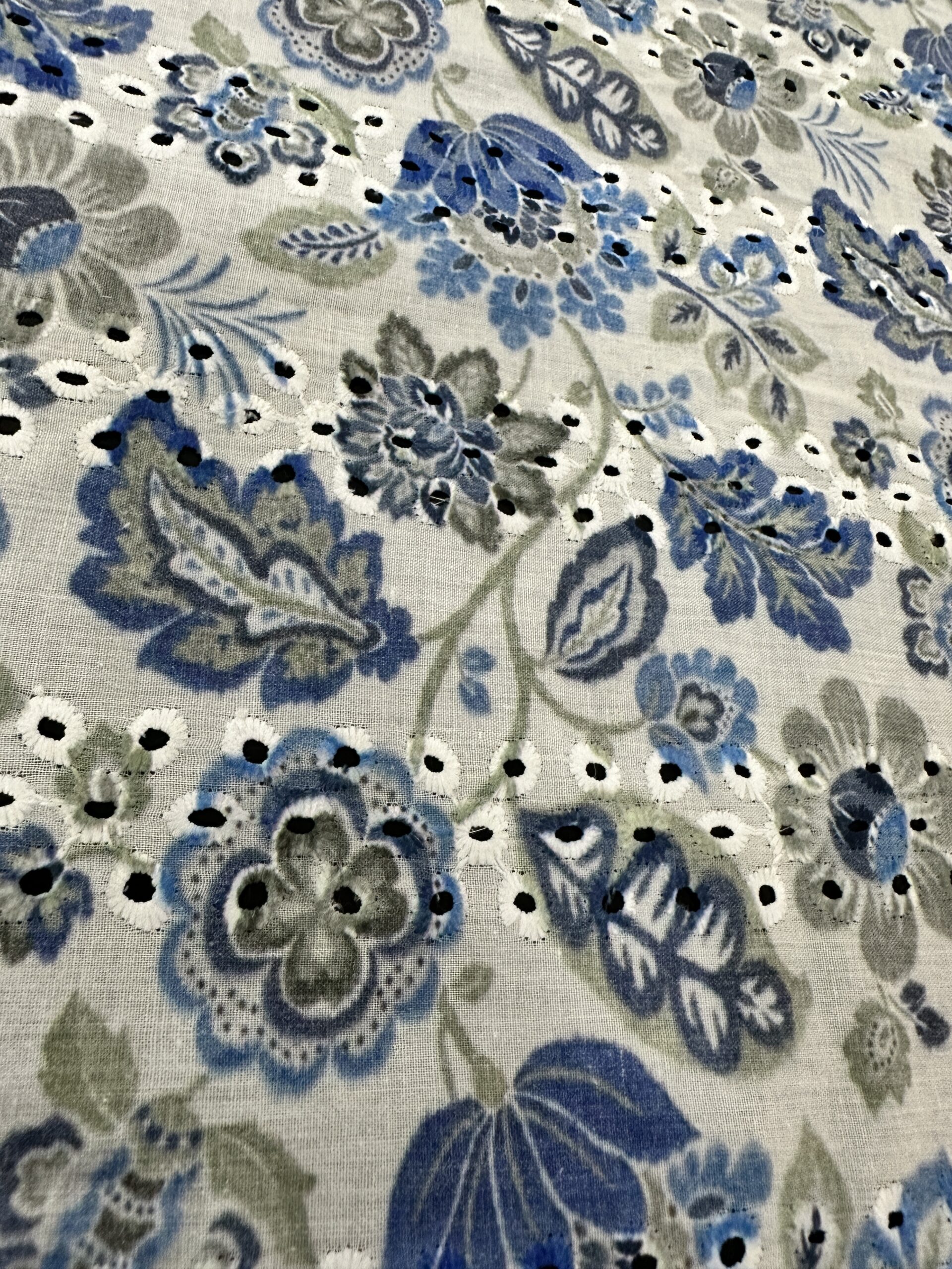 | Colour | Blue, White, and Grey Floral Pattern Print |